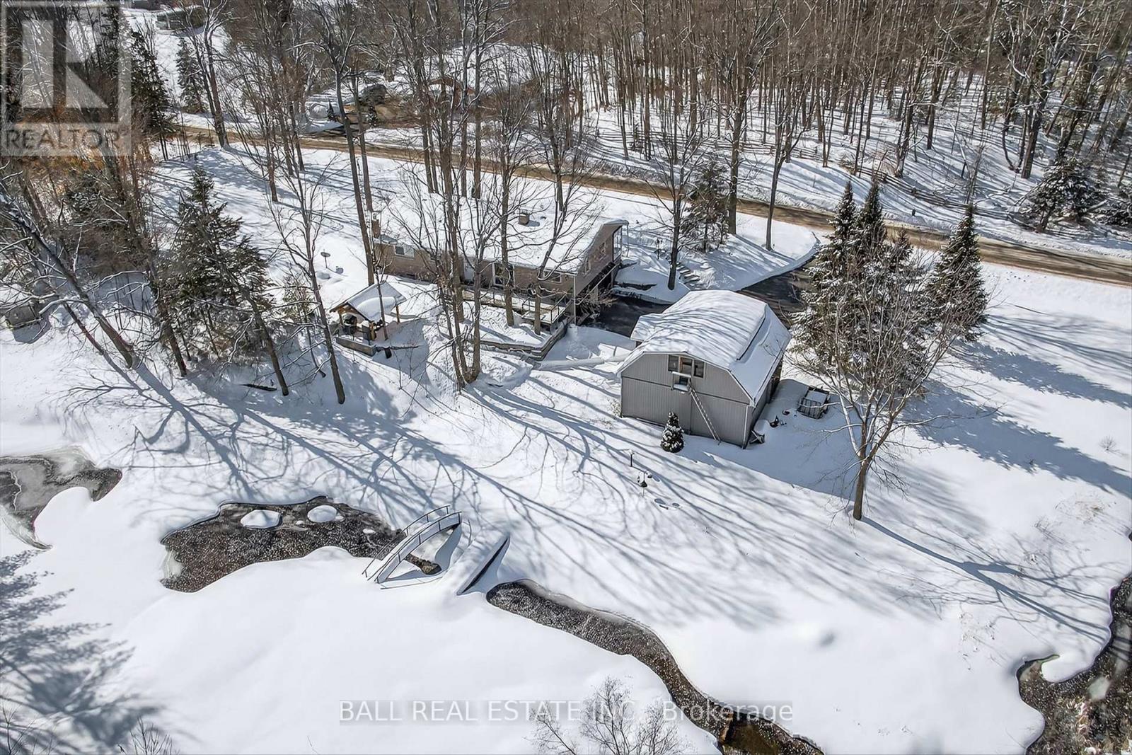 Private 4 bedroom retreat on 2+ acres with stream & pond. Welcome to this beautifully maintained 4 bedroom home nestled on over 2 acres of complete privacy. Surrounded by nature and backing onto a golf course, this property offers the perfect blend of tranquility and convenience. Enjoy outdoor living at its finest with a new metal gazebo, a covered 3-season porch, and picturesque views of your own stream and pond. The expansive property provides plenty of space to relax, entertain, or simply take in the peaceful setting. Car enthusiasts, hobbyists, and small business owners will love the 2 car attached garage plus a large detached workshop and additional garage, offering exceptional storage and workspace options. This rare offering combines privacy, natural beauty, and versatile outbuildings - all in a sought after setting next to a golf course, 15 minutes to Peterborough, 90 mins to the GTA. (id:63658)