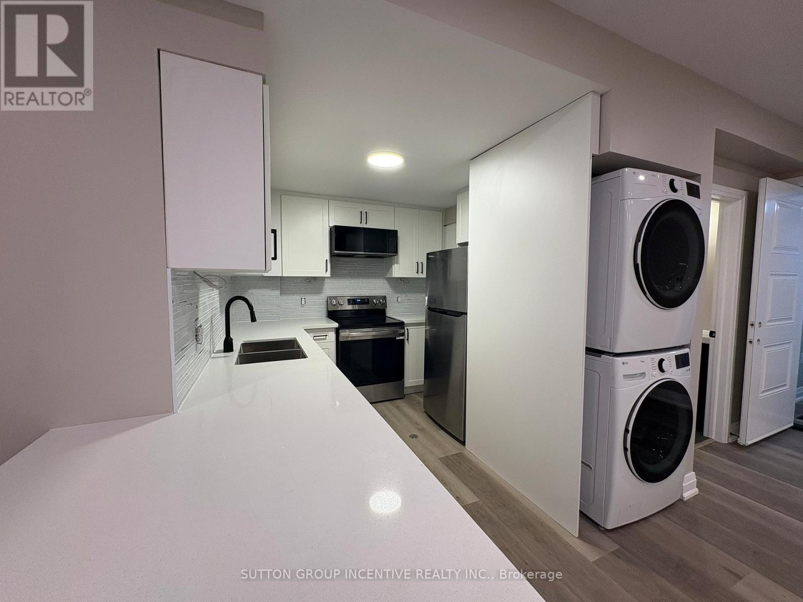 Brand new, beautifully finished 2-bedroom basement apartment offering a bright, open-concept layout with modern finishes throughout. Enjoy 9 ft ceilings, in-floor heating, durable luxury vinyl flooring, and pot lights that create a warm and comfortable living environment. The contemporary kitchen is equipped with quartz countertops, shaker-style cabinetry, subway tile backsplash, stainless steel appliances, and a functional breakfast bar for casual dining. Two bedrooms provide flexible living space, ideal for a single professional or professional couple seeking comfortable, low-maintenance living. The 4-piece bathroom features beautiful tilework and a clean, updated vanity. In-suite stacked laundry adds everyday convenience. Situated on nearly an acre lot, the serene shared backyard features lush greenery and a quiet spot to enjoy the outdoors. It's like living in the "sticks" but in the city! Prime location close to Friday Harbour, The Nest, and Allandale golf courses, with easy access to the GO Train and a Barrie city bus stop. Surrounded by great restaurants, shopping, and essential amenities. Enjoy the ease of low maintenance living as the landlord will take care of the lawn maintenance and snow removal. Well water is chlorine free natural spring water that is filtered and softened. **EXTRAS** Heat, Hydro, Water, Septic, Lawn Maintenance and Snow Removal included in monthly rent. (id:63658)