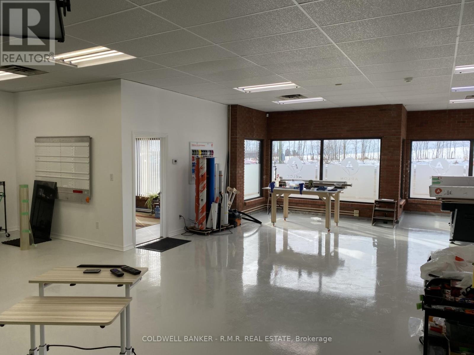 8358 Dale Rd Cobourg, unit 3 is a beautifully renovated 2,275 ft2 commercial space in a professional, well-maintained plaza. The 1,675 ft2 front unit offers excellent road exposure, strong signage, large windows, updated finishes, and an overhead door for easy loading. Forced-air natural gas heating and central air, provide year-round comfort. The 600 ft2 rear accessory unit includes a ceiling-mounted beam hoist, and is ideal for storage, light production, or additional workspace. Located just 5 minutes from Cobourg, at the corner of Dale Road and County Road 18 (Burnham Street). Building includes a working security system. (id:63658)