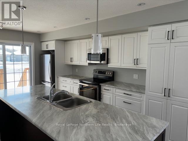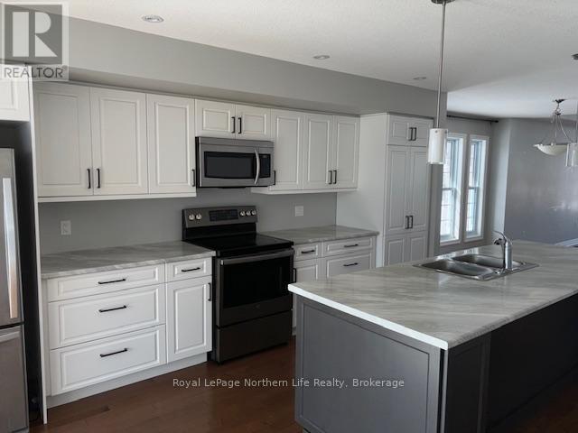 145 Turner Drive, North Bay - Located in beautiful Trillium subdivision in Ferris area off Booth Rd on landscaped corner lot. Double driveway and 1.5 attached garage. 1400 sq' bungalow + full basement and only 5 years old. Open concept kitchen with center island and 4 appliances included and glass sliding doors to partial cover deck. Hardwood floors in living room and dining are with partial vaulted ceiling. 2 bedrooms on main floor and 1-4 bath. Lower level features large rec room and 2 more bedrooms and 1-3 bath. Laundry room with washer and dryer. Lease to be 1 year minimum or longer. $3,300.00 / mth + heat, hydro and water. Close to schools, new arena and baseball field. (id:63658)