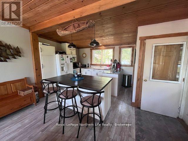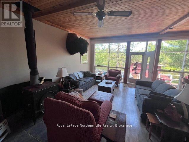 Opportunity is knocking! Located in the north east arm of lake Temagami sits this fabulous, 3 season cottage retreat. Literally only a 3 minute boat ride from the municipal boat launch, this property on Bell island is part of a peninsula which provides waterfront on both the east and west sides of the property. The cottage itself is lovingly maintained with 3 bedrooms, full bathroom, hot and cold running water, holding tank, and many of the amenities you are searching for. There's a large open concept kitchen/dining/living area, a wood stove to cozy up to as well as electric baseboard heat. There are 200 amps of power hooked up to the home. Additionally there is a very cute sleep cabin along the waters edge, two docking systems and even your very own two bay boat house with power. To top it all off there's a walk way to your own tiny island perfect for your evening fires and a glass of wine. This cottage comes with most of the items included to start your adventure. This cottage is right in the heart of great fishing with walleye being caught directly off the dock. Start the adventure of a life time on Lake Temagami, all wrapped up in an affordable package. (id:63658)