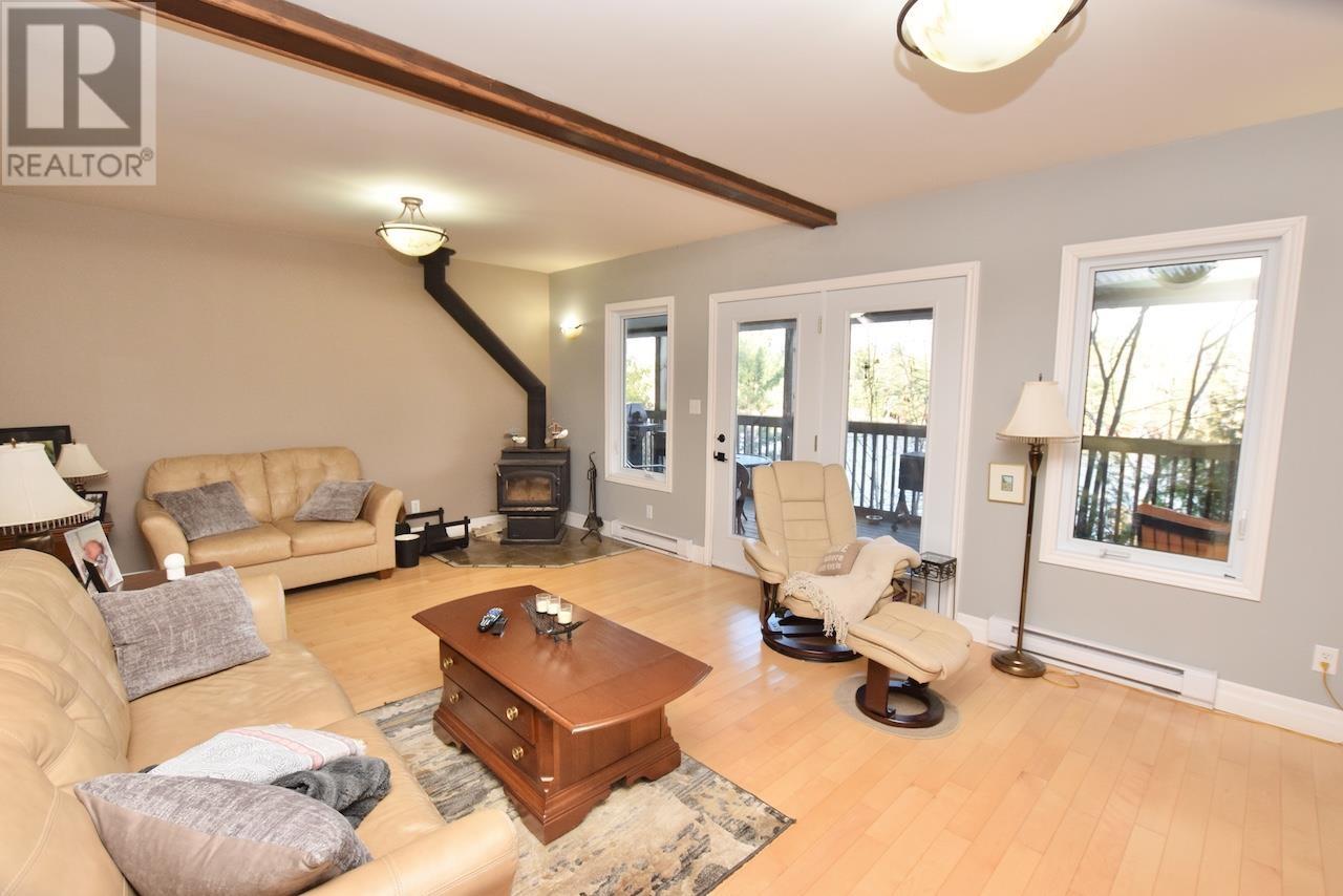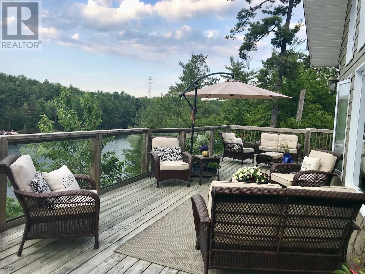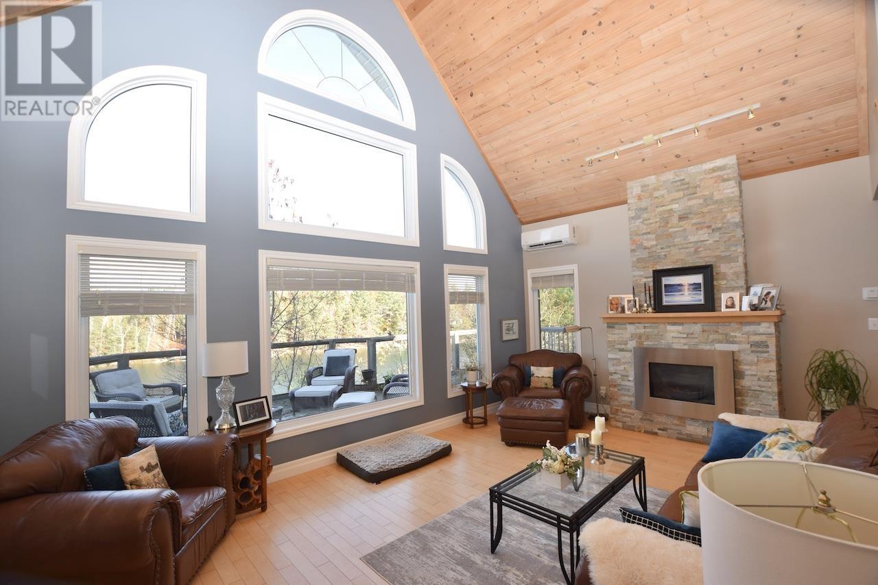 This waterfront home with over 2400 sq. ft. living space on sought after 5000+ acre trout and muskie fishing class Lake Lauzon, Ontario, CANADA offers a harmonious blend of modern comfort and rustic charm. Spread across three floors, this home features an open concept design, connecting the kitchen, dining, and living areas. Vaulted ceilings with wooden beams add character and spaciousness, while large windows flood the interiors with natural light and offer scenic views. The kitchen is equipped with light wood cabinetry, stainless steel appliances, an eat-in area next to windows over looking the lake all perfect for casual dining or food preparation. The living/dining area showcases a cozy gas fireplace, providing warmth and ambiance. Bedrooms are thoughtfully designed, with the primary bedroom on the main level featuring warm, earthy tones and ample storage with a walk-in closet and ensuite bathroom. Bathrooms are modern and well-appointed. Additional amenities include a home office or +1 bedroom space, recreation room, and multiple outdoor access points, including a deck area visible from the main level rooms. Hardwood flooring throughout adds to the home's overall aesthetic appeal and easy maintenance. With 4.6 acres and over 700 feet of frontage on Lake Lauzon, this is a gem of a year round home and retreat. The property includes a 24x32 detached garage, dock at the home as well as for a bonus, two rustic older cabins with a viewing deck and older dock. Everything is here and on a premium large inland lake, be sure to see the 3D virtual tour on-line plus more information including schematic floor plans is available on request. Please book site viewings at least a day in advance. (id:63658)