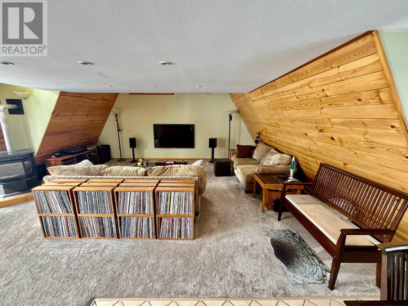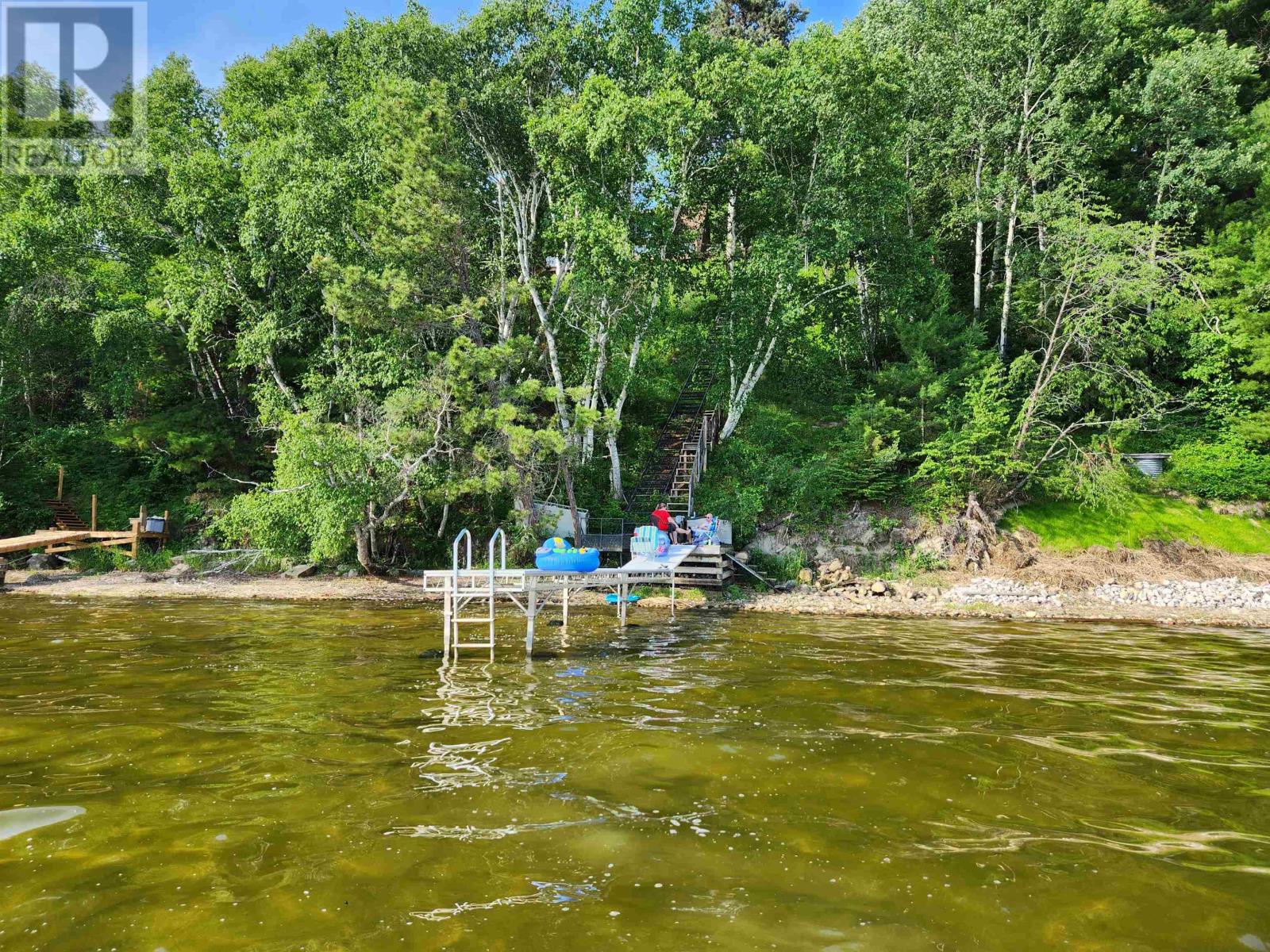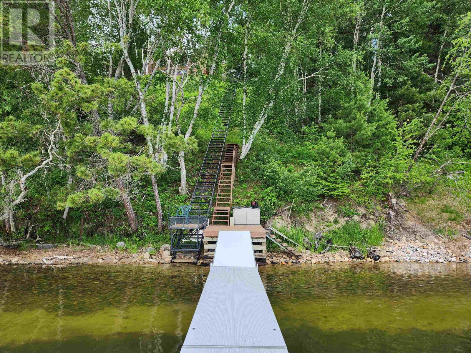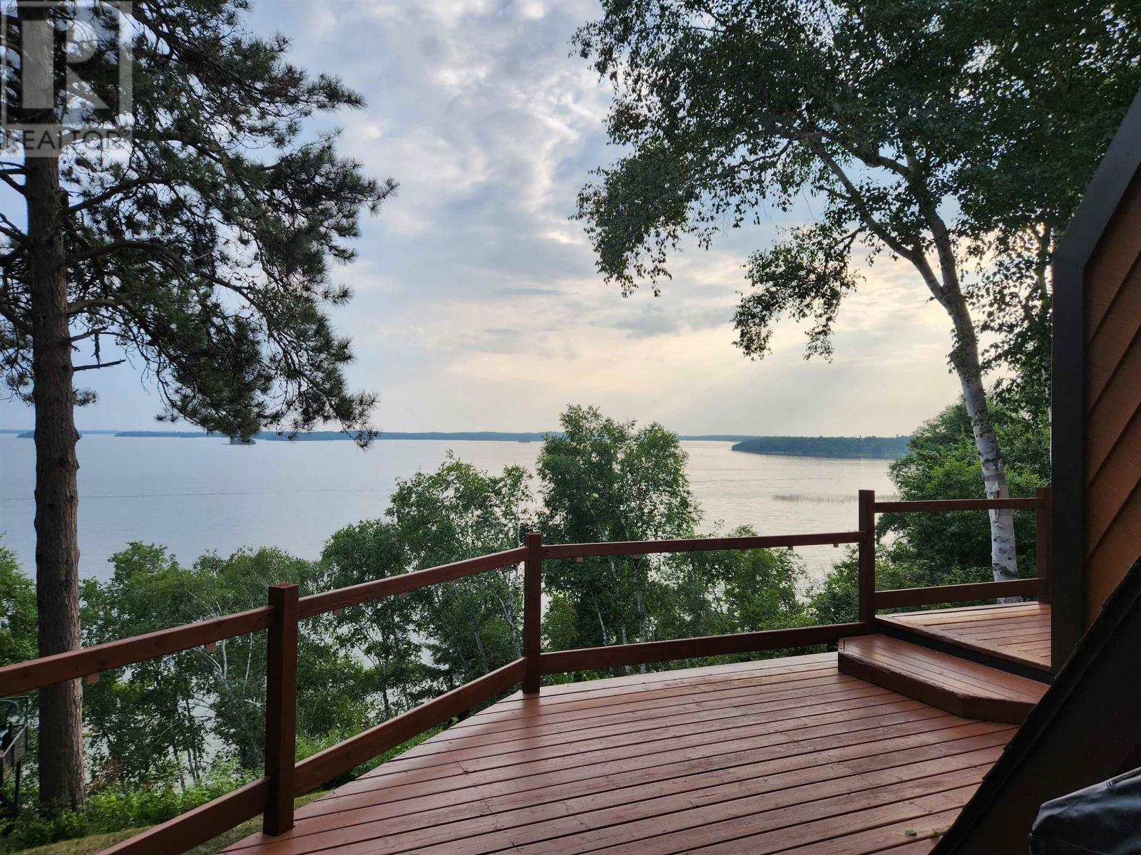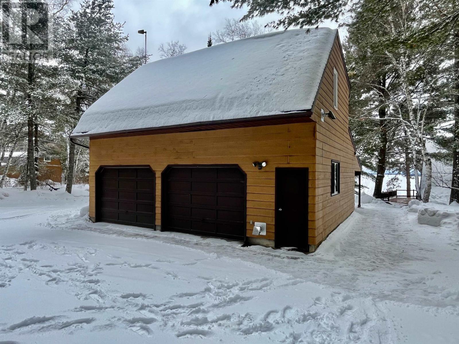 A year-round modified A-frame home offering breathtaking lake views and unforgettable sunsets over Eagle Lake. This beautifully maintained property features 2â??3 bedrooms and 2 full bathrooms, The main level showcases a warm and inviting kitchen with custom pine cabinetry and updated countertops, complemented by a bright dining area with a charming dormer window. The open concept living space is filled with natural light, highlighted by three patio doors and a stunning built-in pine and glass bookcase/china cabinet.3 patio doors lead to a wraparound sun deck. The spacious primary bedroom includes a walk-in closet, built-in oak cabinetry. This level also provides convenient access to a second bathroom with laundry, along with an additional bedroom perfect for guests or family. A patio door walk out gets you easy access to the yard. Set on a beautifully landscaped double lot, the property also includes a detached two-storey double garage with an upper-level two-bedroom guest suite, plus an attached carport. Also, a great workshop area next to the garage offers extra storage. Three more sheds included. Enjoy easy access to the shoreline via metal rail system or a sloped walkway includes a sitting deck area with aluminum roll in dock system compliments the gradual sandy lakefront and shoreline make this property ideal for swimming, relaxing, and taking in the natural beauty of the surroundings. A rare opportunity to own a peaceful lakeside retreat with comfort, charm, and exceptional views year-round. (id:63658)