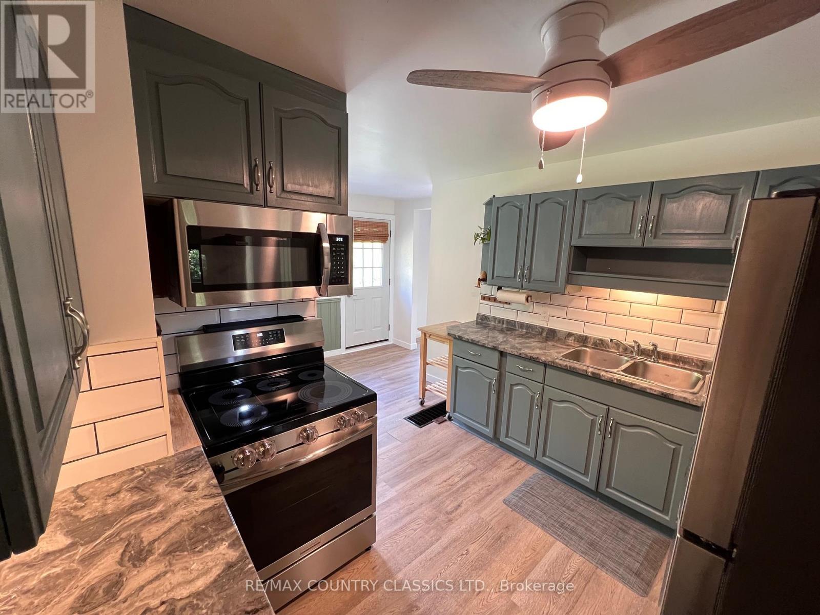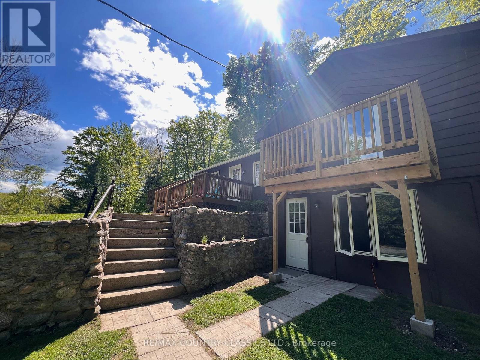 Bancroft - This adorable 3 bedroom home has a gorgeous view of Riddell Lake from the front of the house. No waterfront taxes to pay! Public access to the lake is close by. You can also walk directly across the road and put your canoe in the water. Property is located less than 10 minutes from town on a year round road. The house has had many recent upgrades in 2024 including new floors in the main area, some new windows, and ceiling fans. Main floor has an eat-in kitchen with an attached pantry, master with balcony, living room and 4 piece bathroom. Lovely deck off the front and side of the house for enjoying the view all day long. Walk out basement has a third bedroom, laundry room, second bathroom and a very spacious rec room with a kitchen. The basement with a level entry is perfect for a granny suite! Yard is surrounded by trees, has a gravel driveway and a 16' x 30' dog pen. Home is very economical to heat with both an oil furnace and electric baseboard heaters. Hydro approximately $170 per month and oil approximately $1500 for the year. (id:63658)