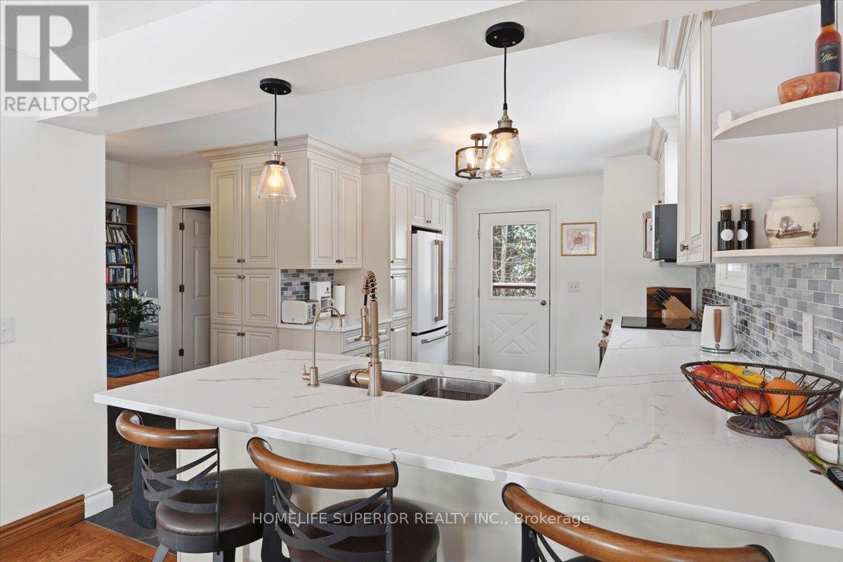 Welcome to 250 River Garden Road, a serene escape located on beautiful Beaver Creek with exceptional boating to Crowe River & Crowe Lake, This two storey cedar home is located on 1.6 acres of land with over 300ft of waterfront. It is lined with beautiful mature trees for optimal shade & privacy. The house was built in 1989 by the current owners who have kept their home in immaculate condition. Through the years that have added a 2 car garage with a finished loft, a custom built gazebo overlooking the water & an arbor stone wall that adds beauty to the shoreline. Recent updates that have been completed in the home include a full kitchen renovation, complete quartz countertops, upgraded appliances & pull out drawers for easy access, 3pc bath with jacuzzi tub & hardwood floors in the bedrooms. Also, on the main floor is an upgraded 3pc bath with shower & a 4th bedroom/den or office. Whether you're looking out the large windows from the main floor, sitting on the balcony off the master bedroom or sitting outside on the large main floor deck there is no shortage of viewpoints to enjoy the river & surrounding nature. For those cool or rainy days there is a cozy & warm family room for entertaining with an electric fireplace, pool table & bar. There is also a large laundry & utility room that provides added storage area. Fibre optic internet access is also available. Enjoy the pictures & video's, this spot is amazing to view. (id:63658)